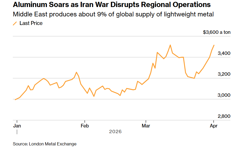 “霍尔木兹海峡堪称全球铝市场的咽喉要道,”伍德麦肯兹(Wood Mackenzie)首席分析师查维・特里维迪(Charvi Trivedi)在4月1日报告中表示,其预计中断将导致今年全球铝产量减少300万至350万吨。“这里的供应中断可能切断中东冶炼厂高达60%的氧化铝供应,迅速加剧市场短缺。”
