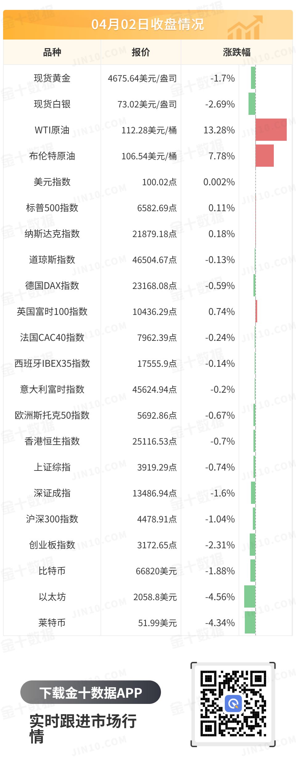 ①特朗普全国讲话并未让市场相信战争即将结束、霍尔木兹海峡问题会得到解决,油价暴涨。