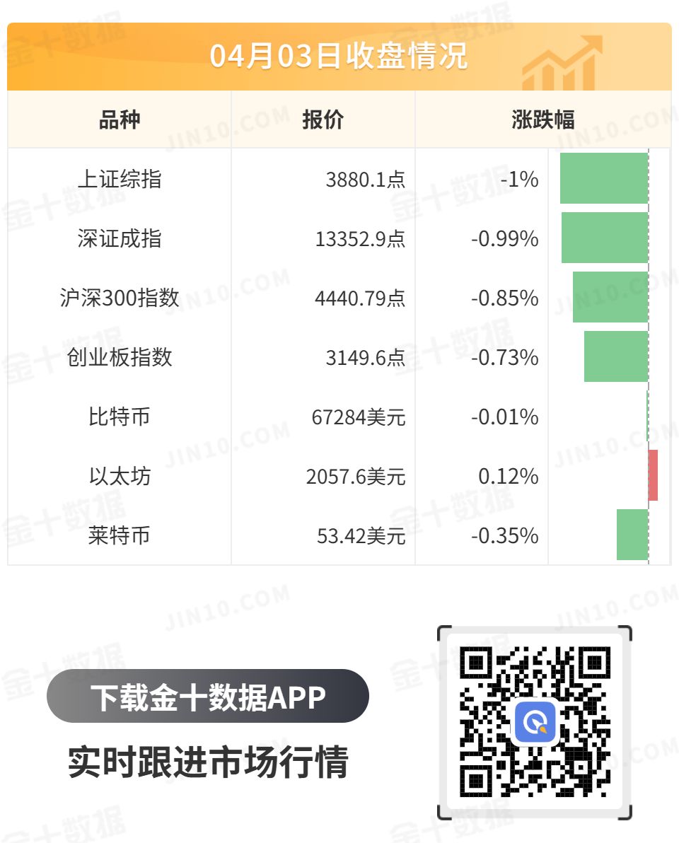 1、美国数据—①美国3月非农超预期反弹,创逾一年高位。数据公布后美联储降息押注下降。②美国服务业三年来首次陷入收缩。