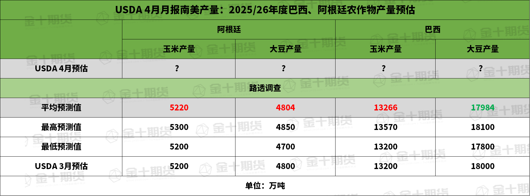 ① 阿根廷2025/26年度玉米产量为5220万吨,预估区间介于5200-5300万吨,USDA在3月报告中预估为5200万吨。