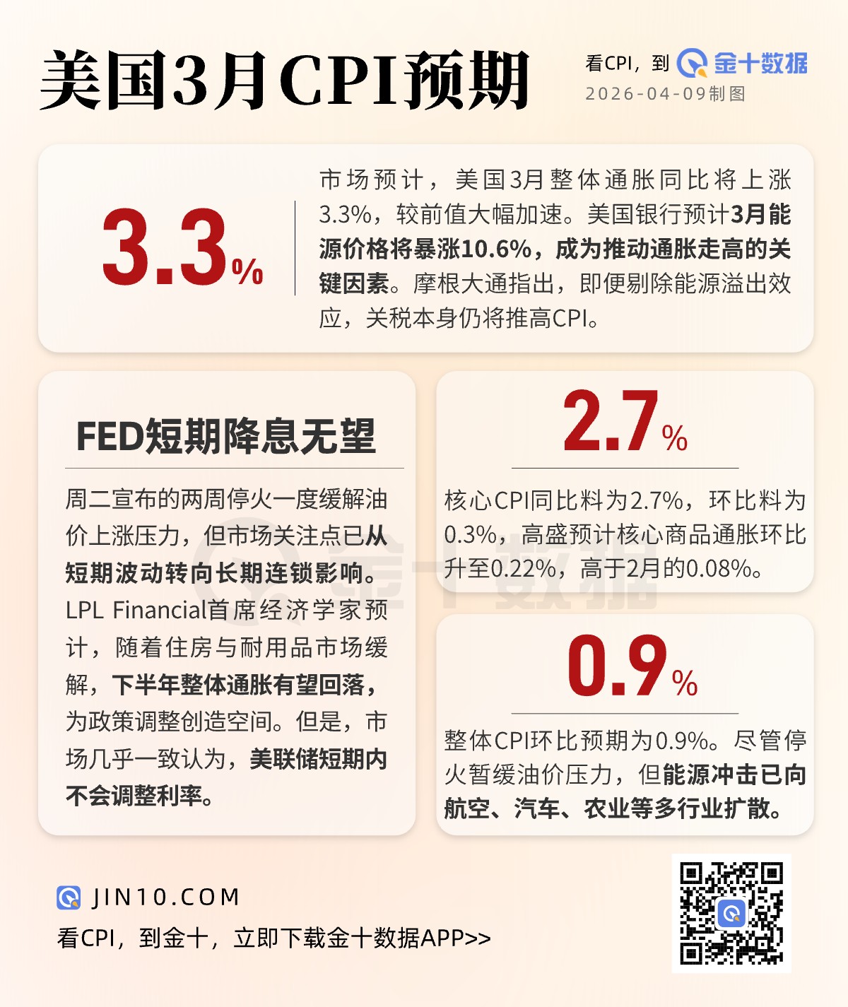 2小时前 美国3月CPI预期:能源冲击叠加关税影响,通胀料大幅回升