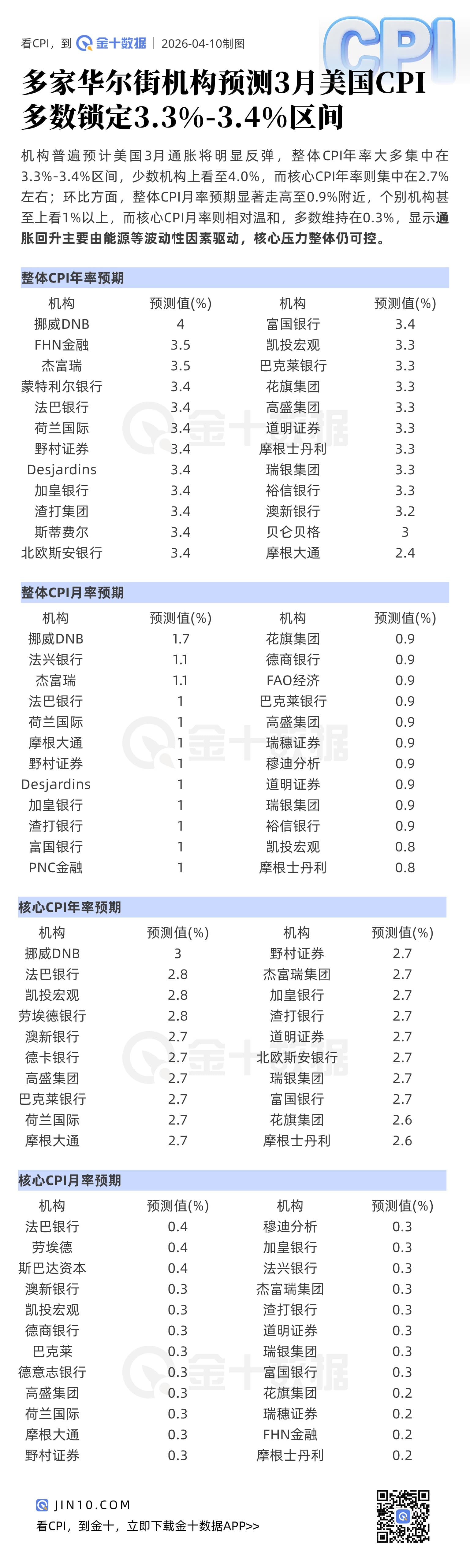 2小时前 美国3月CPI预期集体“抬头”:多数机构押注重回3%以上,最高看至4.0%