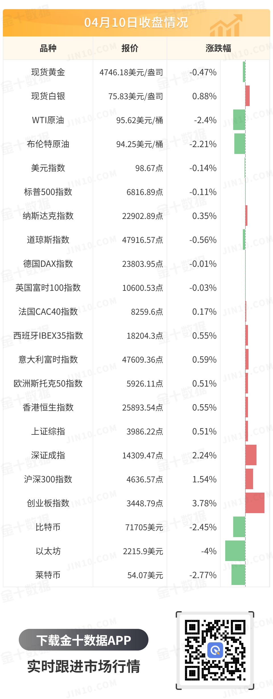 尽管美伊停火协议不稳定,但仍为美伊局势降温带来乐观预期,国际油价下跌逾2%。WTI原油向上触及100美元后回落,最终收跌2.4%,报95.62美元/桶;布伦特原油最终收跌2.21%,报94.25美元/桶。