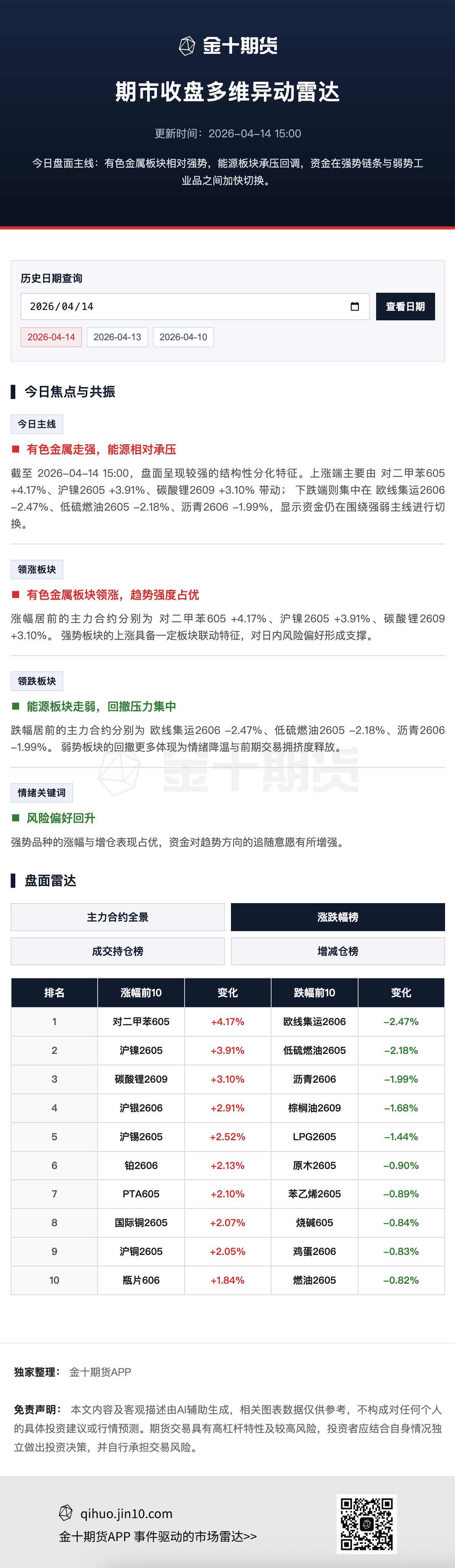 海通期货表示,近端合约驱动跟随现货,本周整体现货报价预计延续小幅调降的趋势,盘面也相应承压。地缘方面美伊和谈受阻可能会带来部分向上情绪修复,因此交易逻辑上更偏向于宏观向上预期和基本面偏弱拖累的博弈。后续主要关注马士基18周开舱情况,其他船司是否跟进宣涨5月,以及降价背景下4月末滚囤搭建的情况。