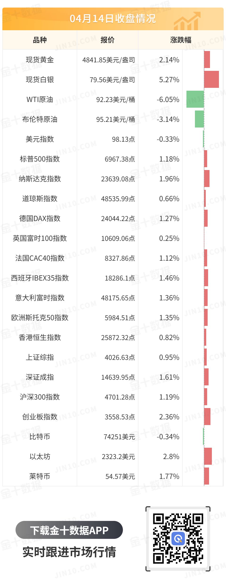 1、美国3月PPI年率录得4%,市场预期为4.6%。