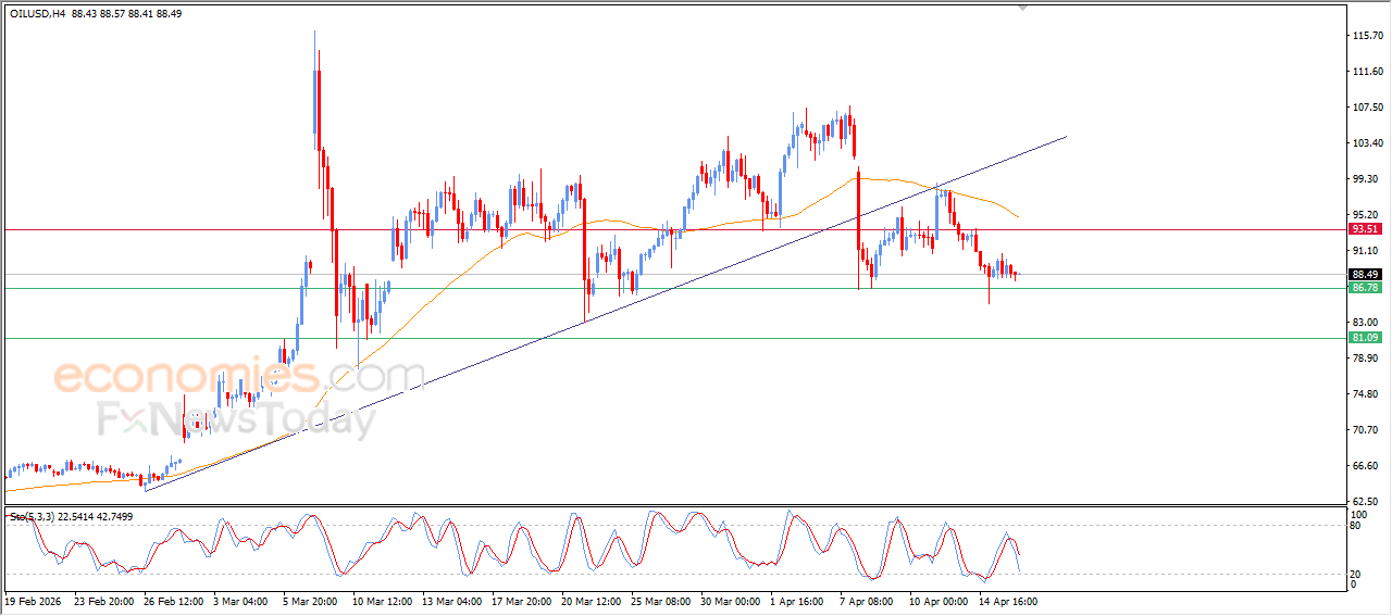 WTI原油期货价格在近期的日内交易中出现下跌,正准备突破86.80美元的关键支撑位,市场抛压持续增强,短期内修正性看跌趋势占据主导地位。目前,价格持续运行在EMA50均线下方,EMA50作为动态阻力,进一步强化了当前的看空预期。与此同时,相对强弱指标持续释放负面信号,在超卖状态释放后,进一步增加了短期内跌破上述关键支撑位的可能性。如果该支撑位被有效突破,WTI原油期货价格有望延续当前的下行趋势。