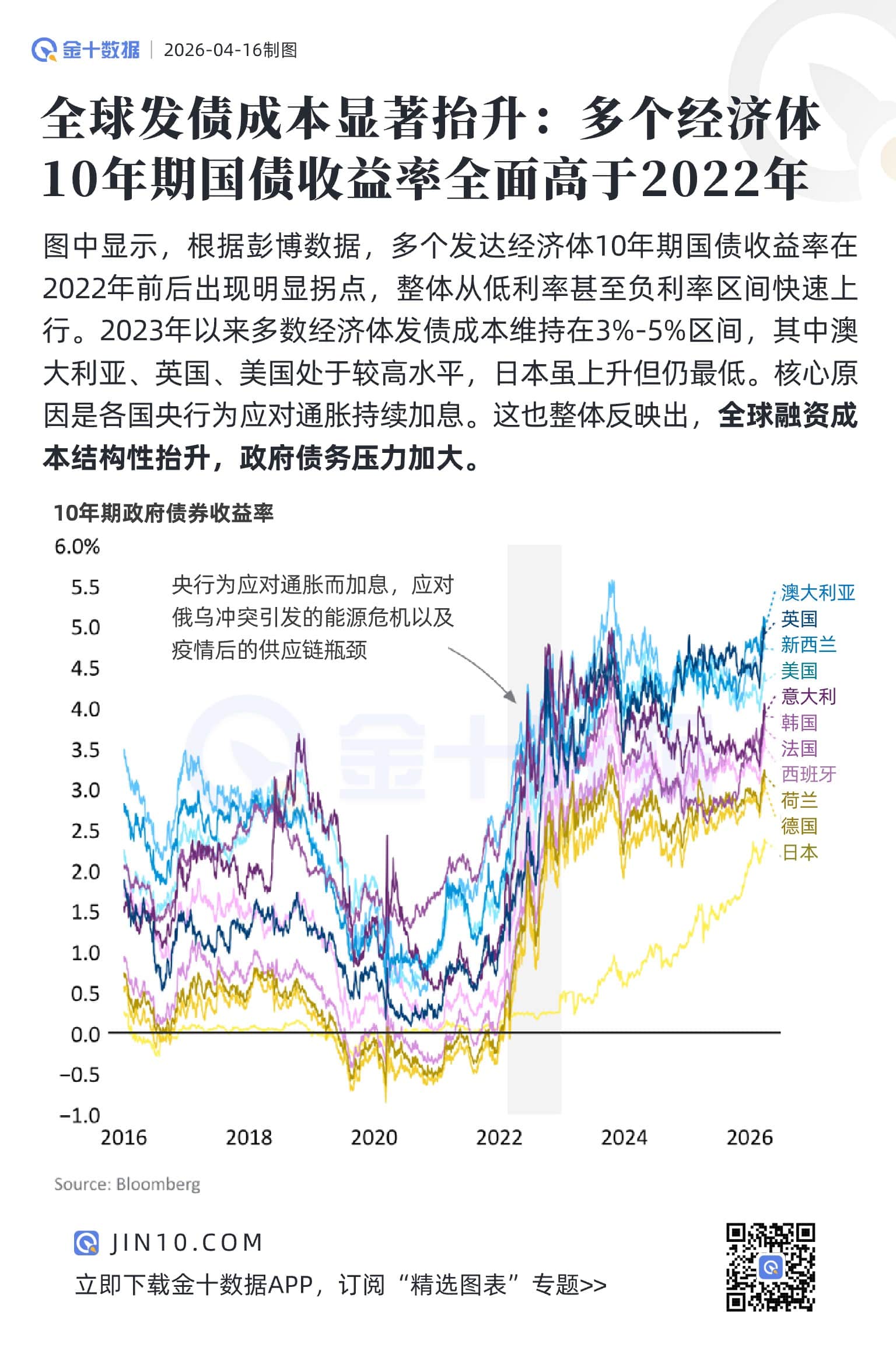 全球发债成本显著抬升:多个经济体10年期国债收益率全面高于2022年