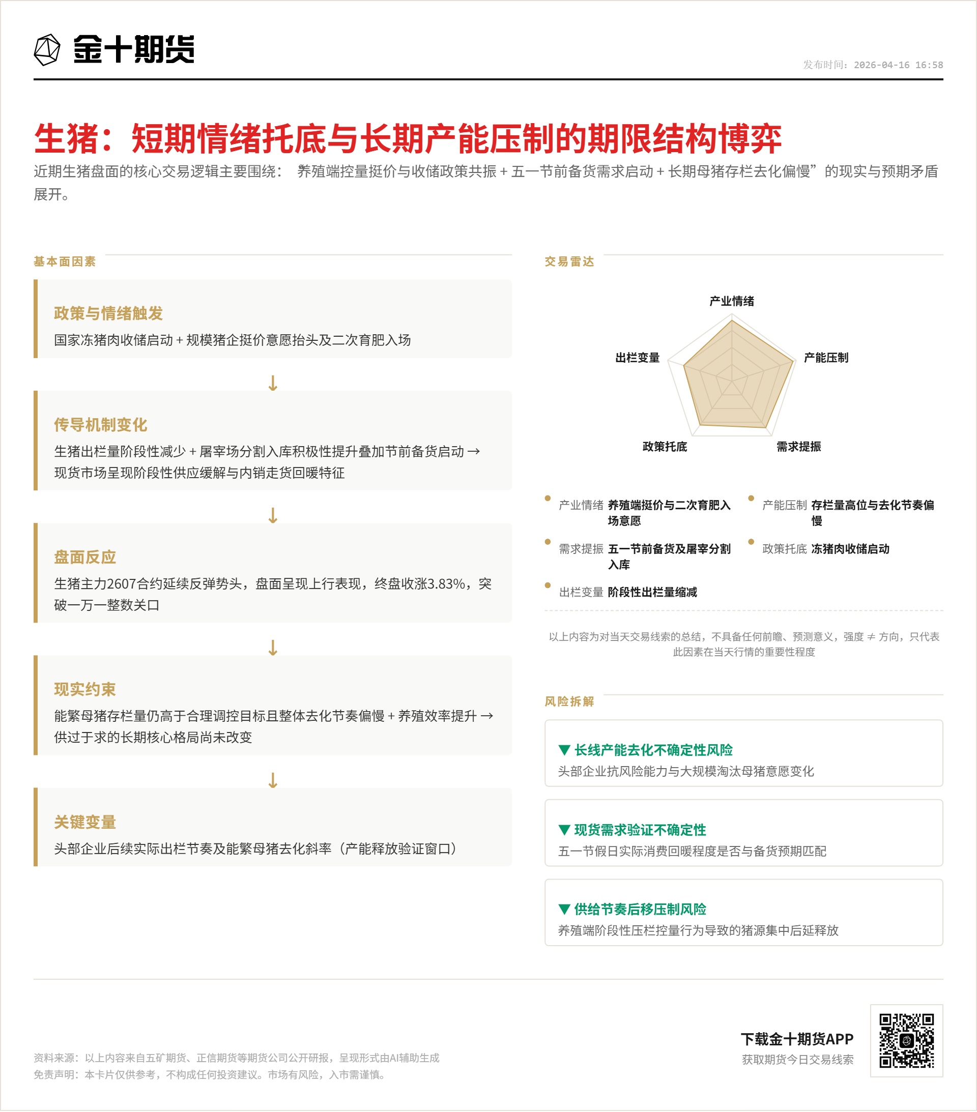 2小时前 生猪周期反转可期,多个核心要素共振!| 金十期货热图