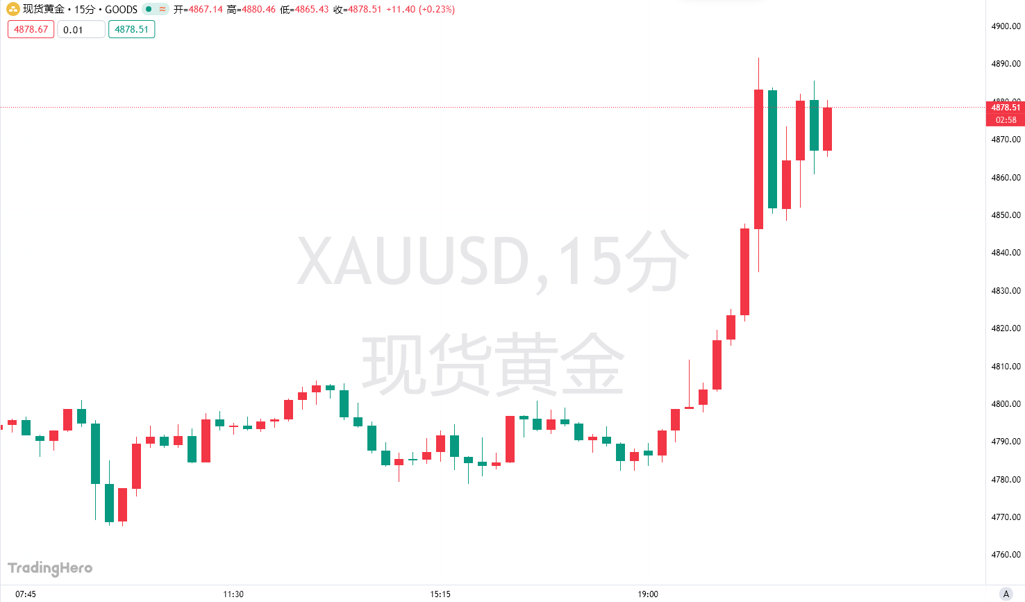 周五美盘,现货黄金涨近2%,并一度逼近4900美元。