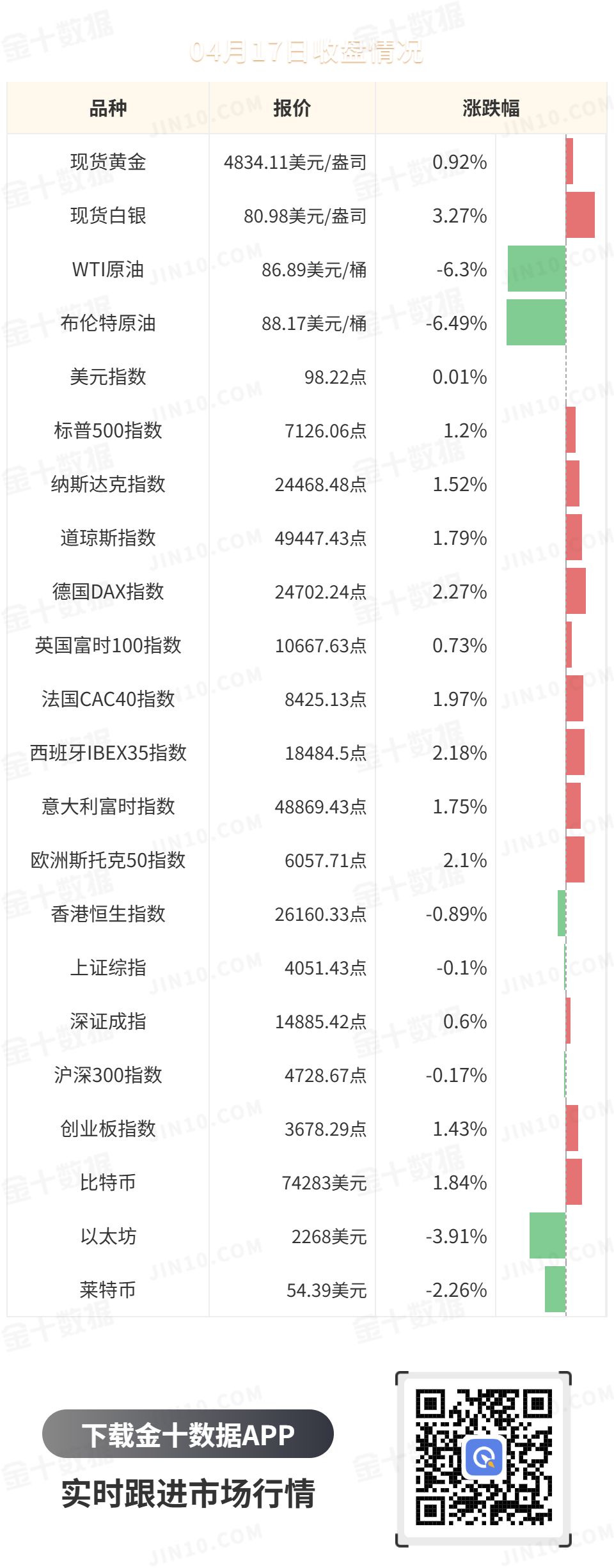 3、临时停火本周三到期,特朗普称美伊20日将在伊斯兰堡举行谈判,白宫称万斯将赴巴基斯坦参加会谈;但伊朗媒体报道称,伊朗拒绝参加与美国的第二轮谈判,伊美“二谈”消息不实,谈判前景不明。与此同时,伊斯兰堡安保升级,载有美方人员的飞机抵巴。