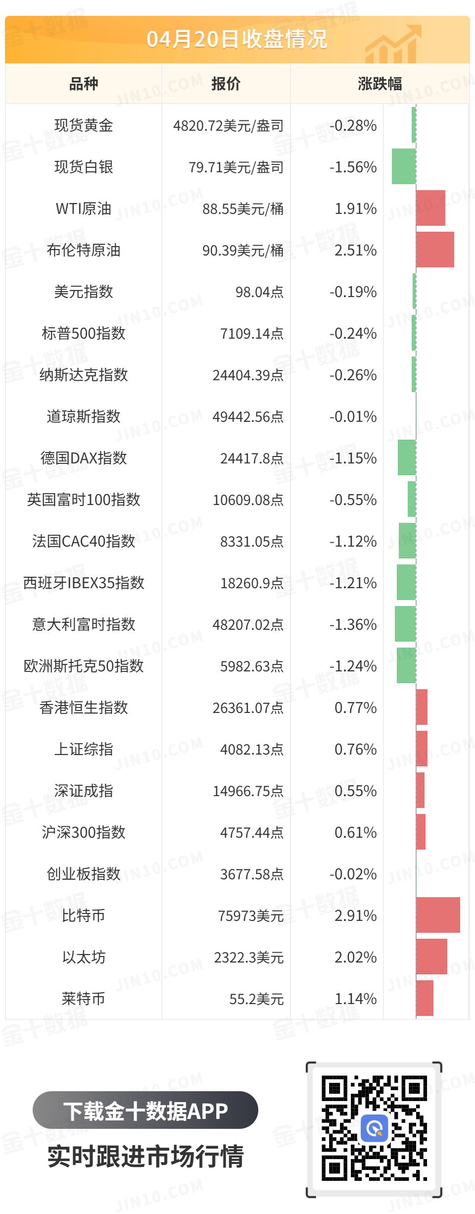 现货黄金开盘后一度跌超1%,并跌破4740关口,随后收复部分失地,最终收跌0.28%,报4820.72美元/盎司;现货白银跳空低开后陷入震荡,最终收跌1.56%,报79.71美元/盎司。