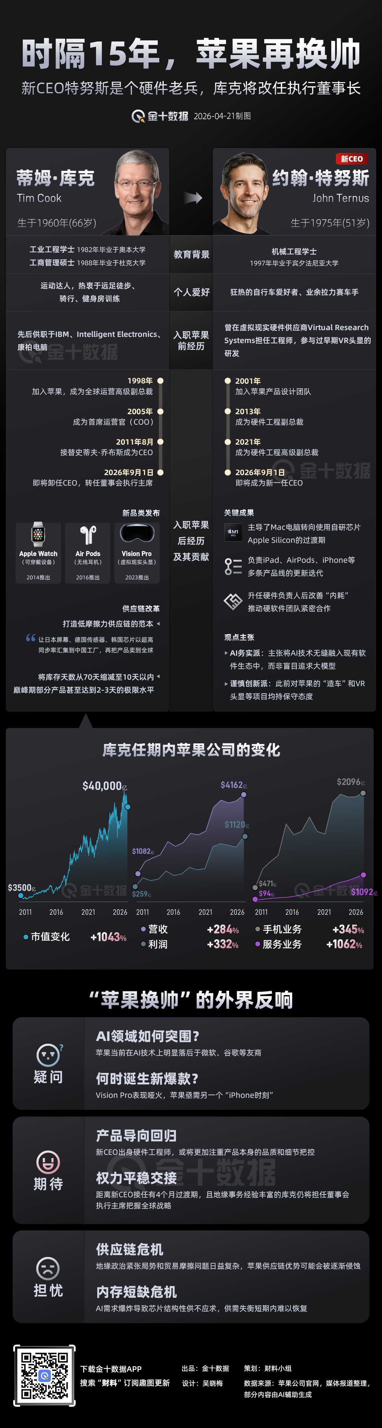 2小时前 苹果换帅!新CEO是工龄25年的“硬件老兵”,9月1日正式接任|财料