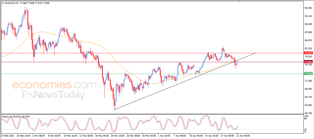 Economies.com的分析师今日最新观点: 现货白银价格上涨,主要受到动能改善的支撑。此前,相对强弱指标(RSI)在进入超卖区域后释放出积极信号,推动价格回升,部分收复了此前的跌幅,并使得价格重测77.60阻力位,显示出市场试图重新获得平衡。这一走势同时伴随着价格触及EMA50均线的阻力位,使得该区域在技术面上具有重要意义。尤其是在短期内此前已经突破了下行修正趋势线的影响下,若未能有效突破该阻力位并确认后续的反弹,现货白银的上涨动能可能会受到一定限制。