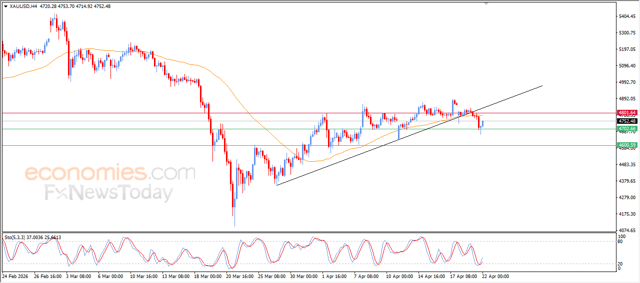 Economies.com的分析师今日最新观点: 现货黄金价格出现上涨,受益于价格维持在4700支撑位上方,这也是我们此前报告中预期的目标位。该支撑为价格带来了积极推动,帮助现货黄金部分收复了此前的跌幅。与此同时,相对强弱指标有所改善,价格脱离超卖区域后出现了积极信号。尽管现货黄金出现了阶段性反弹,但下行压力依然存在,尤其是在价格跌破短期上升修正趋势线后,并且仍持续运行于EMA50均线下方。这些因素限制了当前反弹的力度,也降低了短期内完全恢复的可能性。