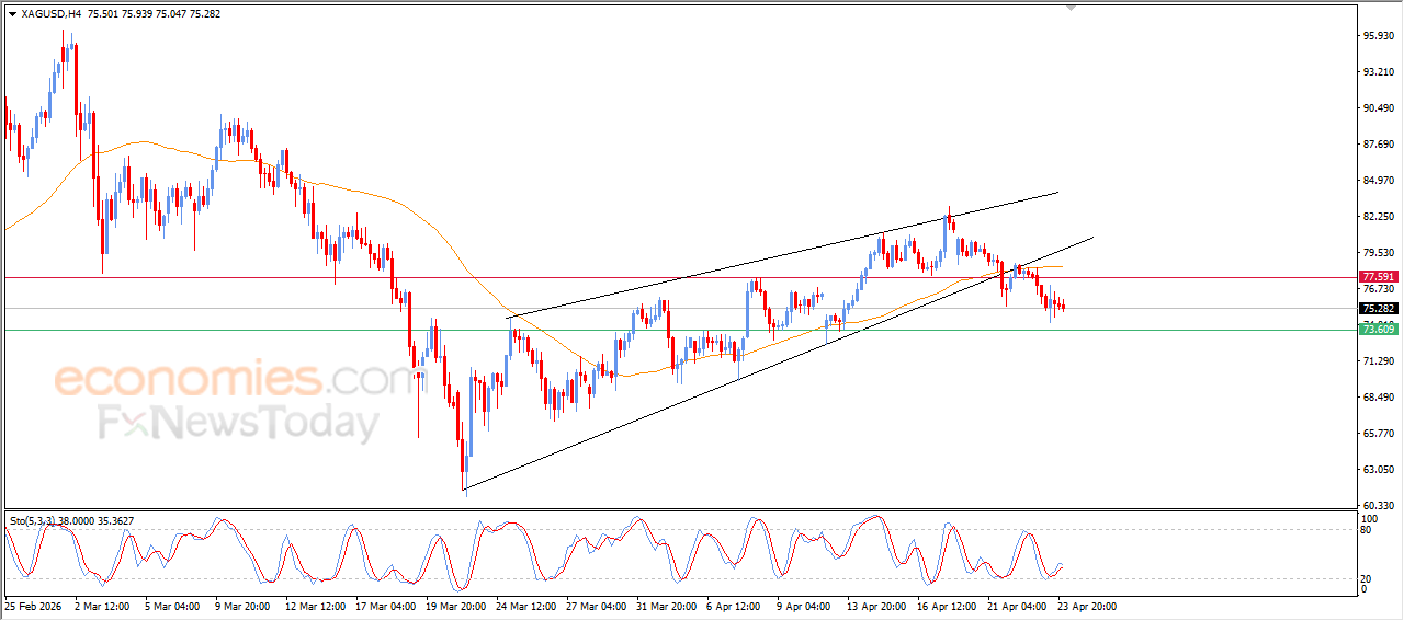 Economies.com的分析师今日最新观点:现货白银在近期的日内交易中出现下跌,主要受此前在短周期内形成的技术性利空形态——上升楔形的影响,该形态加剧了市场的抛压,推动价格持续走低。当前,现货白银价格依然运行在EMA50均线下方,EMA50作为动态阻力位,有效限制了价格的反弹空间,从而进一步强化了看跌预期。同时,经过部分超卖状态的修复后,相对强弱指标(RSI)上也开始出现负向交叉信号,为价格在短期内进一步扩大跌幅提供了更多空间。