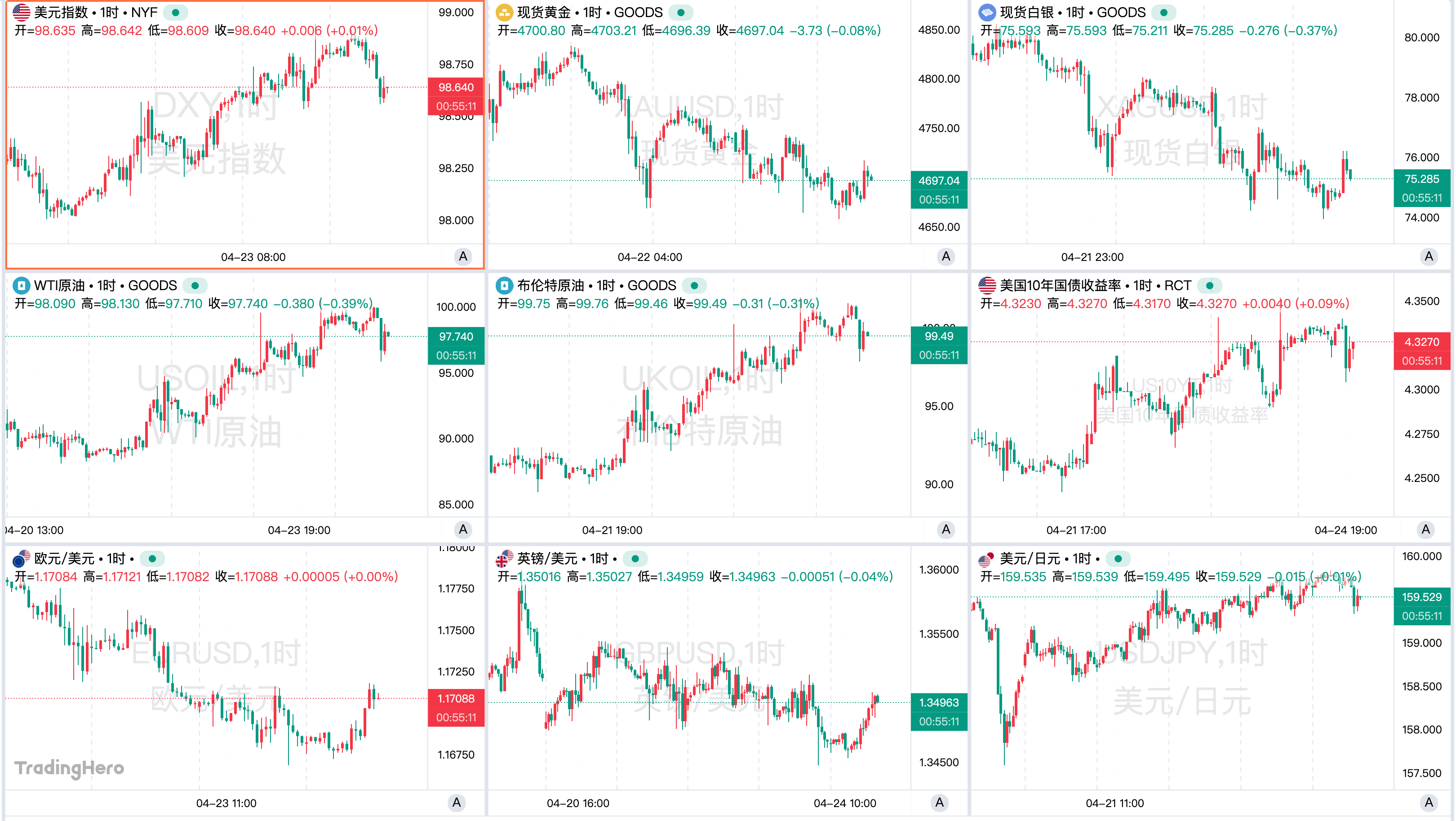 现货金银整体偏弱下行,料将结束4周连涨。金价单日一度跌超2%、失守4700美元关口。白银等贵金属同步承压。油价大涨推升通胀和利率预期,美元走强、美债收益率上行削弱无息资产吸引力,是主要压力来源。
