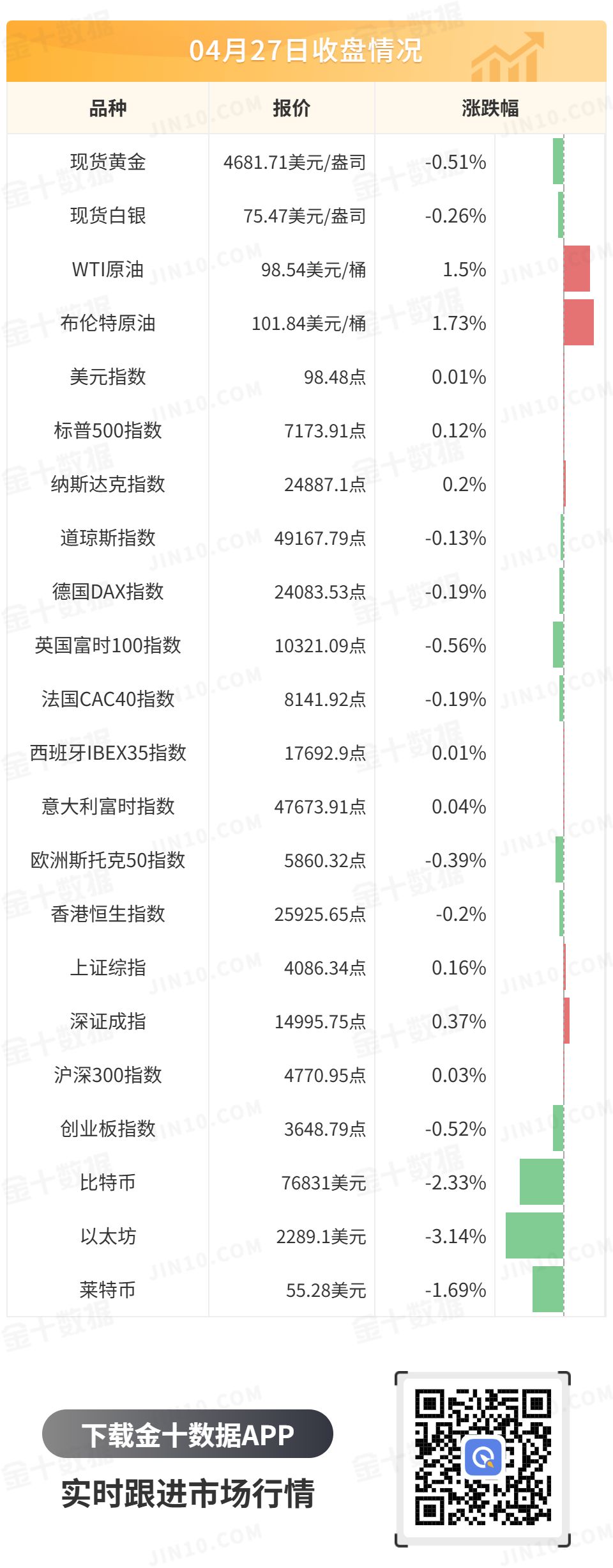 现货黄金低开高走,盘中一度升至4720美元,但随后震荡下行,并跌破4700美元,抹去日内全部涨幅,最终收跌0.51%,报4681.71美元/盎司;现货白银最终收跌0.26%,报75.47美元/盎司。