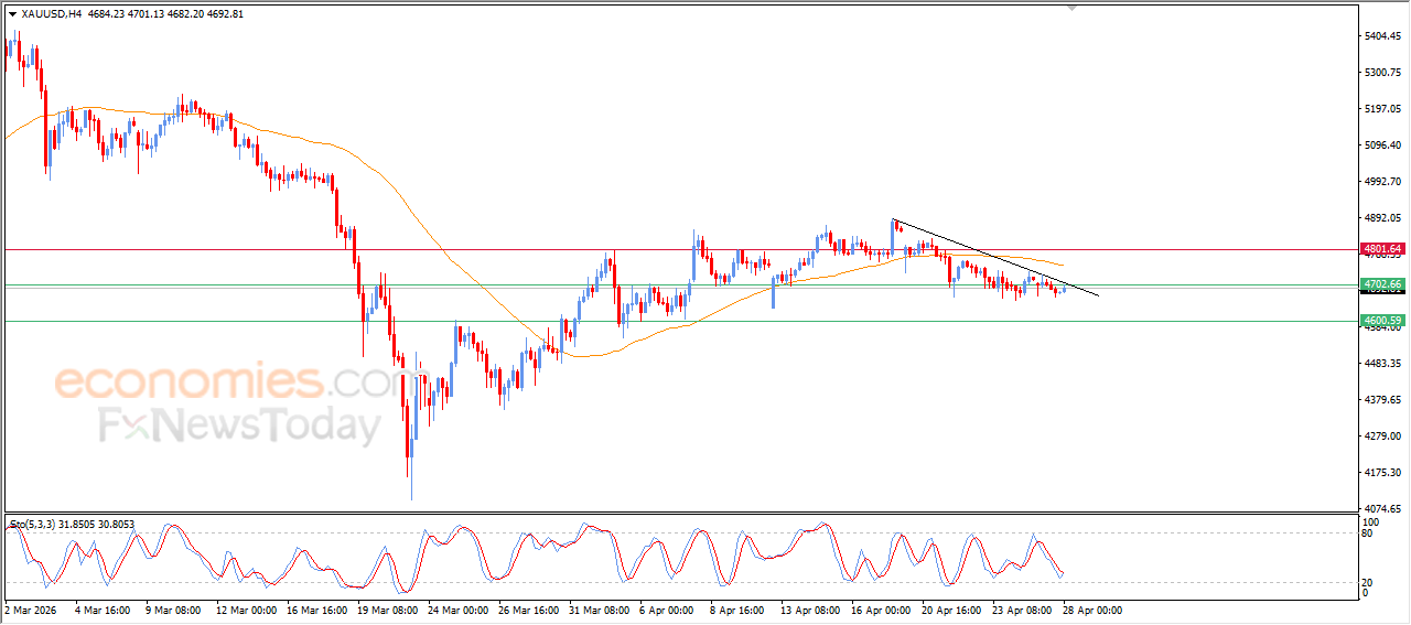 Economies.com的分析师今日最新观点:现货黄金在近期盘中交易中录得小幅上涨,但短线依然沿着一条次级空头趋势线运行,反映出持续的抛压,尤其是在价格依然处于EMA50均线下方,这限制了短期内的反弹机会。