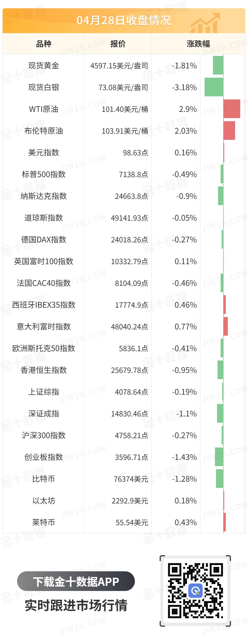 因投资者评估伊朗冲突陷入僵局 ,以及阿联酋将脱离欧佩克消息,国际油价大幅上行。WTI原油冲上100美元上方,并一度升至103.59的日内高点,最终收涨2.9%,报101.40美元/桶;布伦特原油最终收涨2.03%,报103.91美元/桶。
