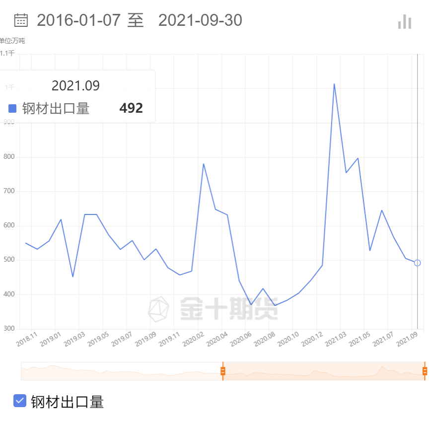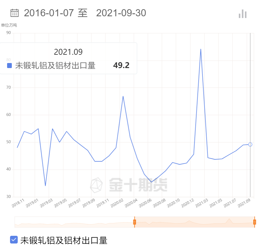 海关总署数据显示,中国9月钢材出口为492.0万吨,8月为505.3万吨。未锻轧铝及铝材出口49.19万吨,8月为49.02万吨,出口量创2020年3月以来最高月度水平。
