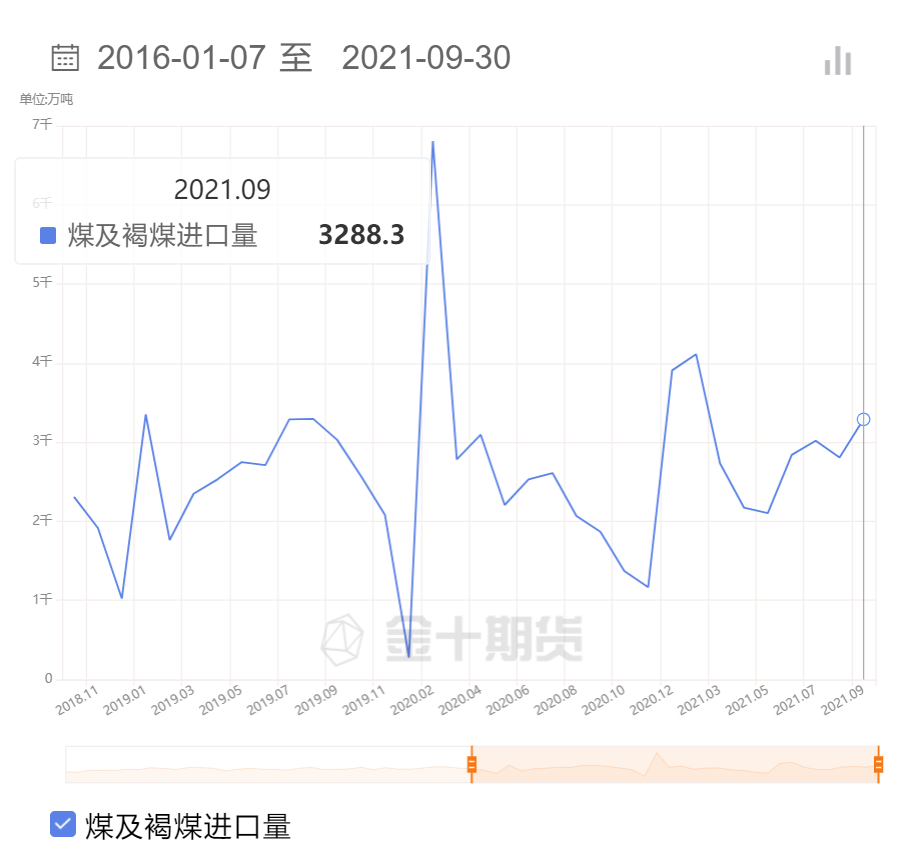 海关总署公布的数据显示,中国9月煤及褐煤进口3288.3万吨,同比增长76%,为今年以来最高水平;1-9月煤及褐煤进口2.304亿吨,同比下降3.6%。主要是由于发电厂在冬季取暖季到来前购买燃料以提振发电量,以缓解电力紧张并补充煤炭库存。