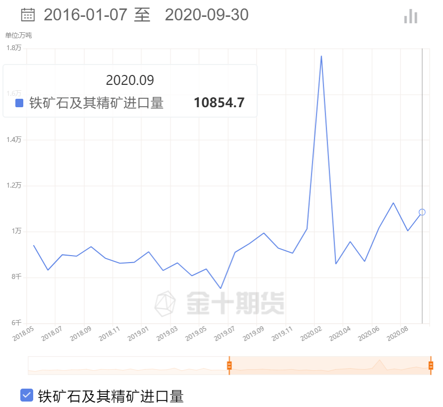 海关总署公布的数据显示,中国9月铁矿砂及其精矿进口较8月下降1.9%,今年前三个季度,中国进口了8.42亿吨铁矿石,同比下降3%。因钢铁限产抑制了这种炼钢原材料的消费。华泰期货亦表示,受两高限电及冬奥会环保影响,粗钢10月月度产量重心仍将较9月继续下降,国内铁矿消费将进一步受到压制。