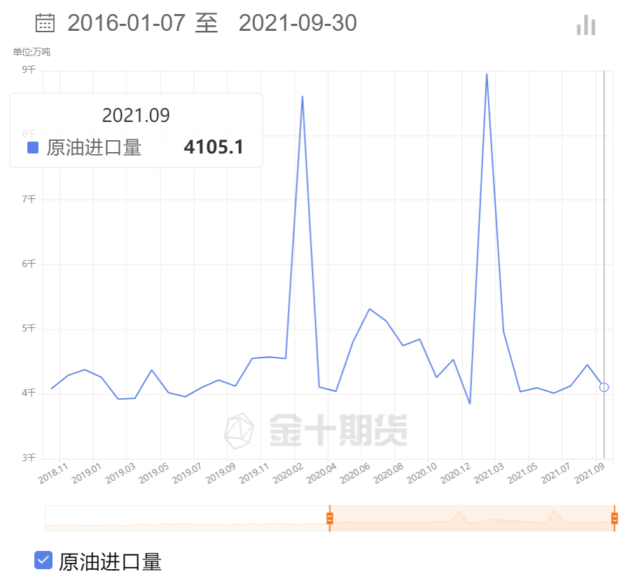 海关总署公布的数据显示,中国9月原油进口较上年同期下降15.3%,1—9月原油进口同比下降6.8%至3.87亿吨,因企业在全球价格上涨之际使用原有库存,且因受原油和成品油进口配额收紧影响,限制原油购买。此外,中国9月份天然气进口量升至1062万吨,为1月份以来的最高水平,主要是由于企业用于发电的煤炭短缺,导致供电偏紧,在冬季取暖旺季之前积累库存。